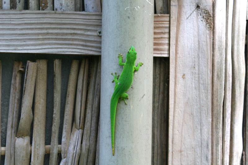 Eine Attraktion, nicht nur für Ornithologen, ist der Casela Nature Park (früher Casela Bird Park) im Westen von Mauritius, zwischen den Orten Tamarin und Flic en Flacq. Mittlerweile besteht dort auch die Möglichkeit zu verschiedensten Events, wie geführte Touren, Quad-Touren oder "walk with animals". Neben jeder Menge Vogelarten beherbergt der Park mittlerweile auch sehr viele Säuger und, was wiederum für uns von großer Bedeutung war, P.cepediana, P.ornata, P.guimbeaui und in wachsender Verbreitung P.grandis. Die Phelsumen leben in dem Park natürlich frei auf der Vegetation, obwohl sie immer wieder gerne in die Vogelkäfige gehen, um die dort als Futter ausgelegten Früchte zu vernaschen. | |